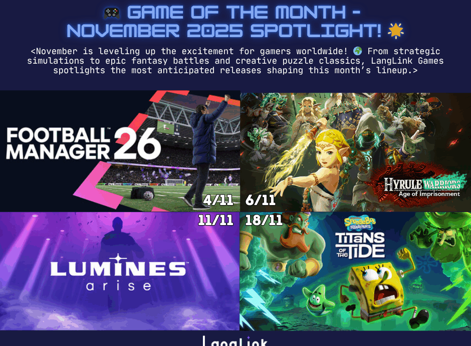 #LangLinkGames #GameLocalization #GamingTranslation #GameQA #LQA #GameDubbing #ArtProduction #GameDevelopment #GameIndustry #NovemberGameReleases #AAA #GameOfTheMonth #LocalizationTesting #GamingCommunity